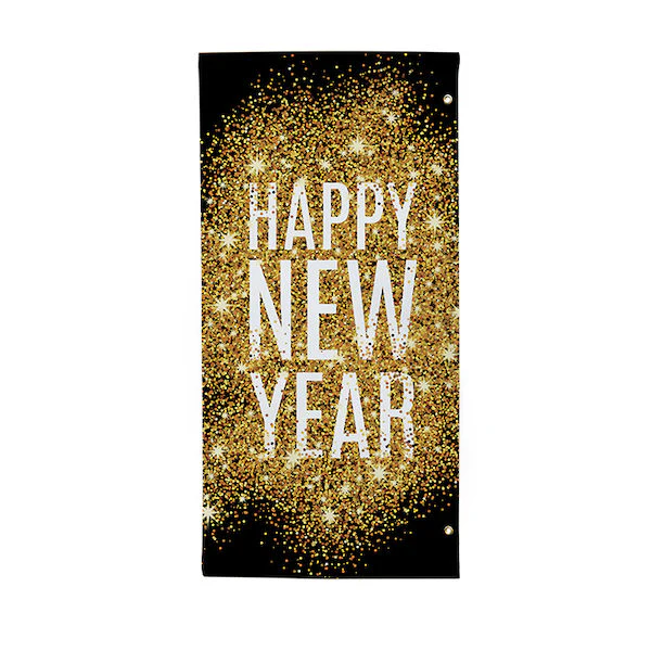 - Banner features grommets along one edge